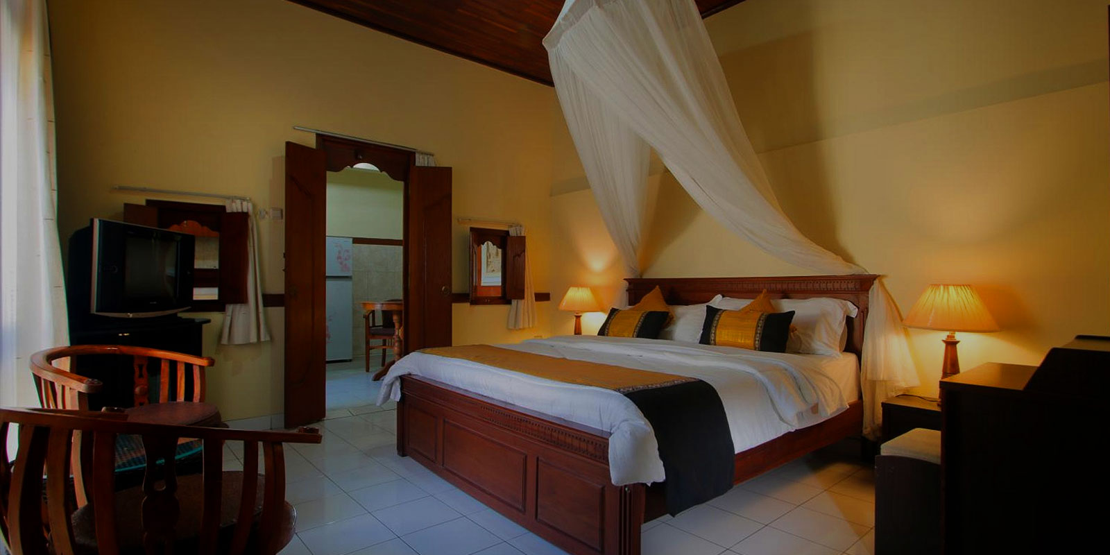 Designed in classic Balinese style, each room boasts ethnic decor and intricately carved wooden doors, exuding artistic charm unique to Bali. The lush garden enveloping the property enhances the peaceful ambiance, making it an ideal sanctuary for vacationers.